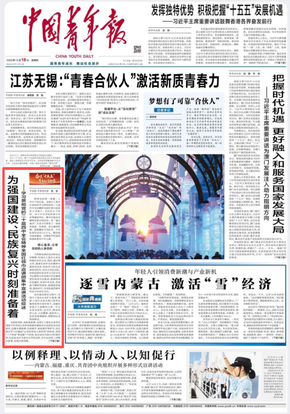 首都北京是宣讲首站。巡讲团走进8所中小学校,为5500余名少先队员带来兼具“思想”与“童味”的交流体验。 “从我们脚下的土地,到登上去南极的冰船需要多久?”“如何开启极地之旅?”巡讲团成员、中国极地研究中心(中国极地研究所)副研究员唐尧,结合全会提出的“强化深海极地考察支撑保障体系”分享《来自极地的故事》。活泼的语言和互动让少先队员们了解了极地建站的艰辛历程和重要意义。 “从这个故事中我知道了我们国家创新的密码。”“我们国家的极地科考探索太了不起,他们的探索和坚守太让人敬佩了!”少先队员们收获满满。少先队辅导员、少先队工作者也受到感染。“能把思政内容讲得这么贴近生活和吸引人,这对于我们进行跨学科课程思政研究太有启发了。”北京市东城区史家胡同小学党委副书记张怡说。 “将宏大时代主题巧妙融入少年儿童易于理解的叙事之中,用真情实感讲述鲜活故事,为我们提供了实践范本和创新思路。”北京市朝阳区委教育工委团少工委办公室主任郑婷婷说。 在天津,巡讲团走进河东区实验小学、天津港保税区空港学校。巡讲团成员、河北省邯郸市复兴区第二实验小学大队辅导员李紫叶以《“中国建造”的超棒成绩单》为题,讲述了“十四五”期间雄安新区等城市建设发展的成就,引领少先队员感悟中国制度的巨大优势。